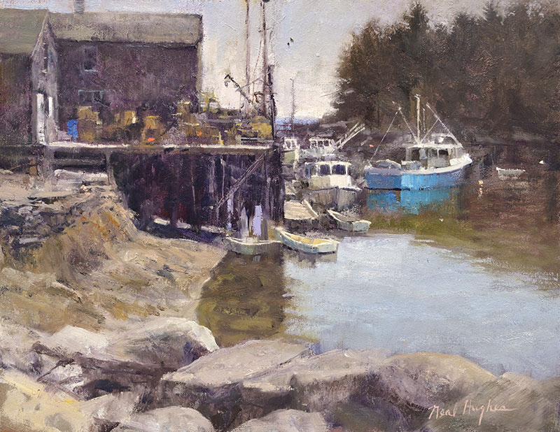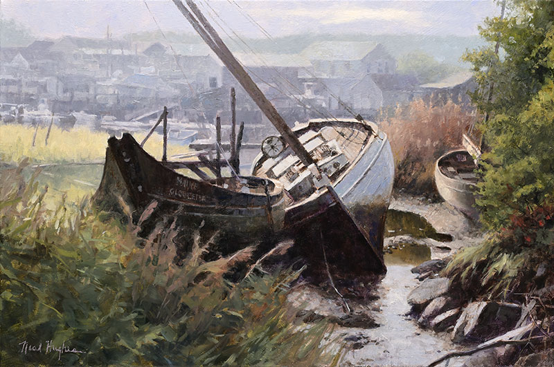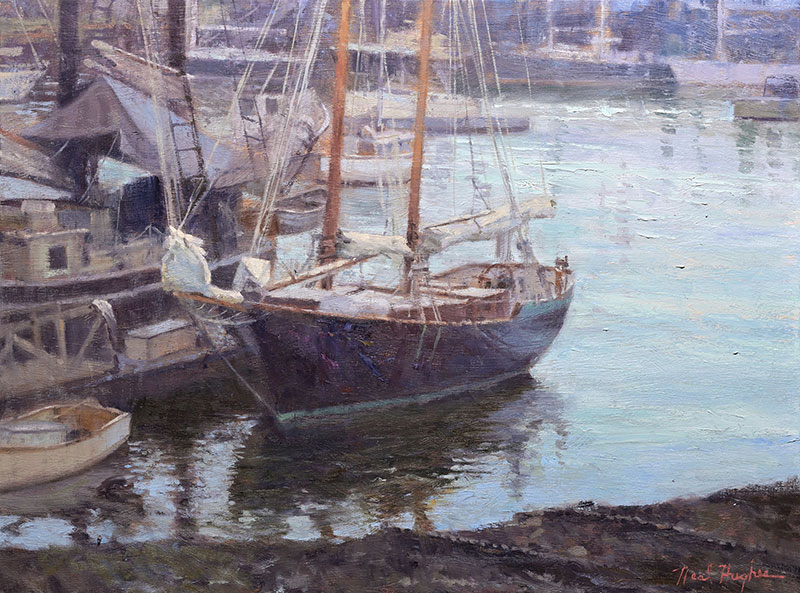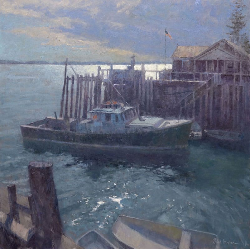 Morning Mist 30x40 oil on linen. Gold medal - Oil Painters of America Eastern Regional Exhibition. This is a studio piece based on a plein air study that was completed in Rockland, ME. Sold