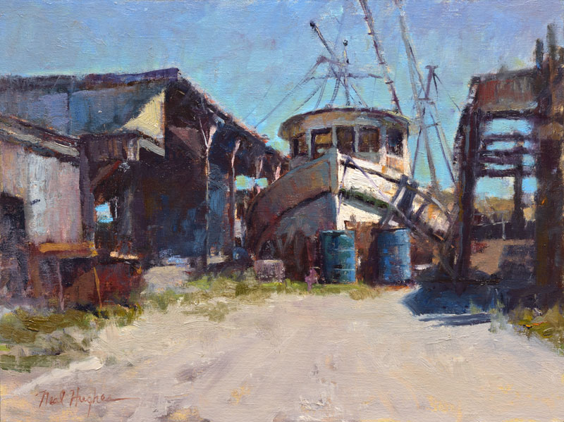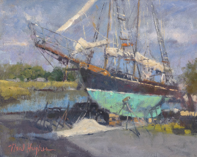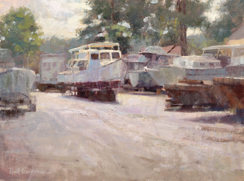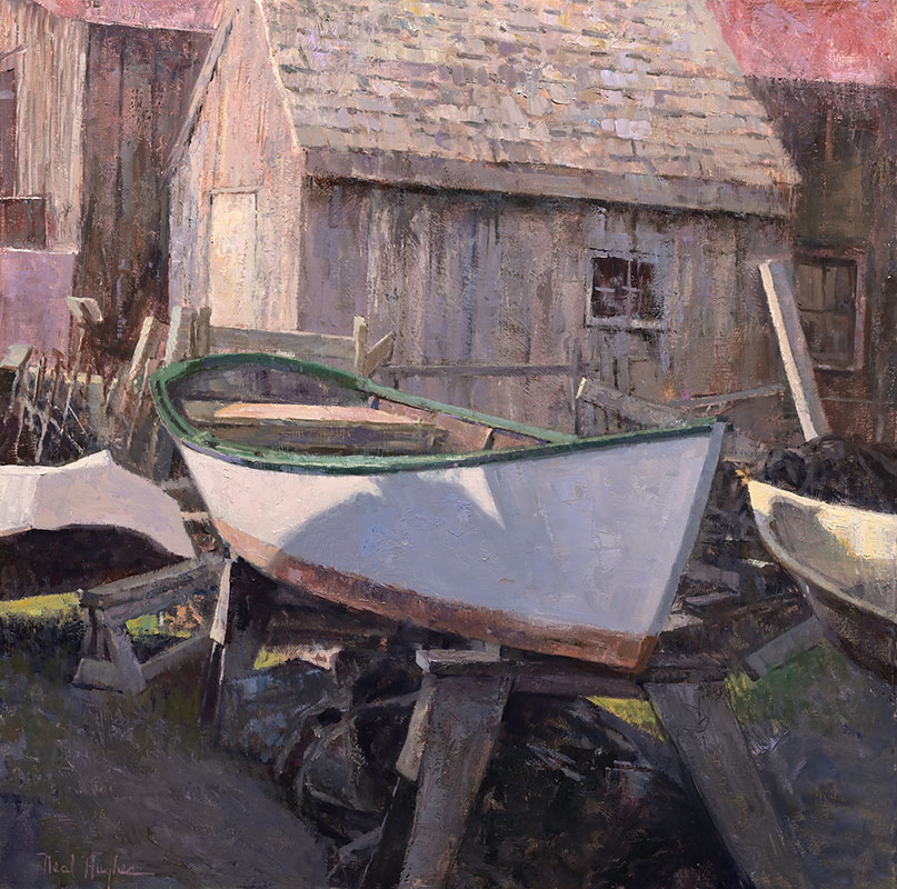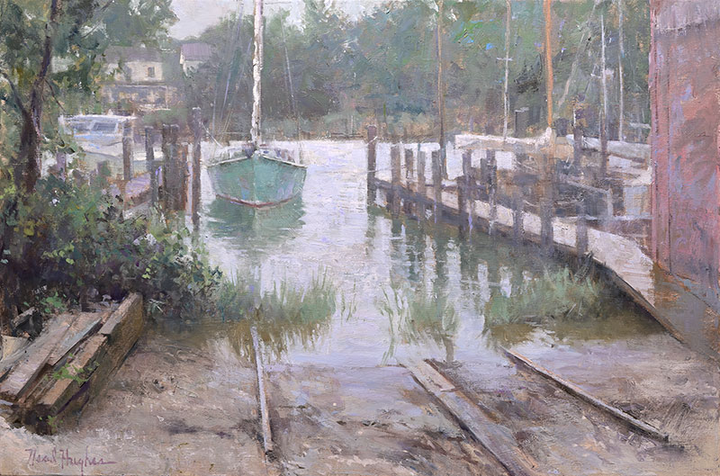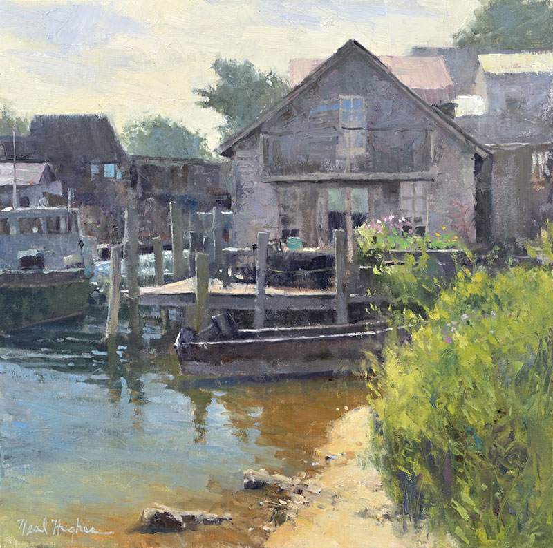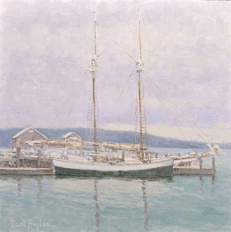 Hazy Glimmer 30x30 Oil on linen. Painted at the Chesapeake Bay Maritime Museum during Plein Air Easton competition. Sold