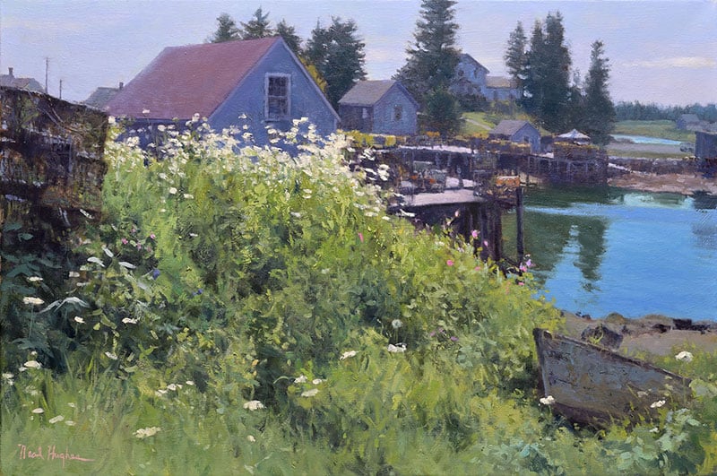 Harbor Blooms 20x39 oil on linen. Past Presidents |Award of Excellence - Oil Painters of America National Exhibition. Available at Cavalier Galleries