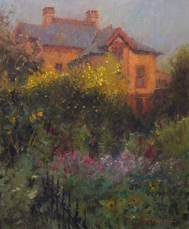 Fayettville Roses 12x20 oil on linen. SOLD Founders Vanishing Landscape Painting Award - Olmstead Plein Air Invitational 2019